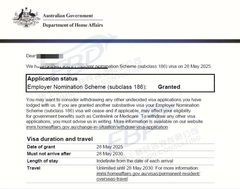 在详细评估后,我们为客户规划了 186雇主担保签证(Direct Entry) 的路径。