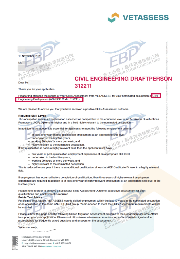 你能想象吗?他这种“零学历 + 英语一般 + 不在澳洲”的情况,居然还能顺利通过职业评估。结果还不止这些——被电调了两轮!客户提交之后因为时差问题,Vetassess多次联系不上。最终——两轮电话调查 + 面试。但反而因为沟通充分、细节真实,评估官对他的经验更有信心了。
